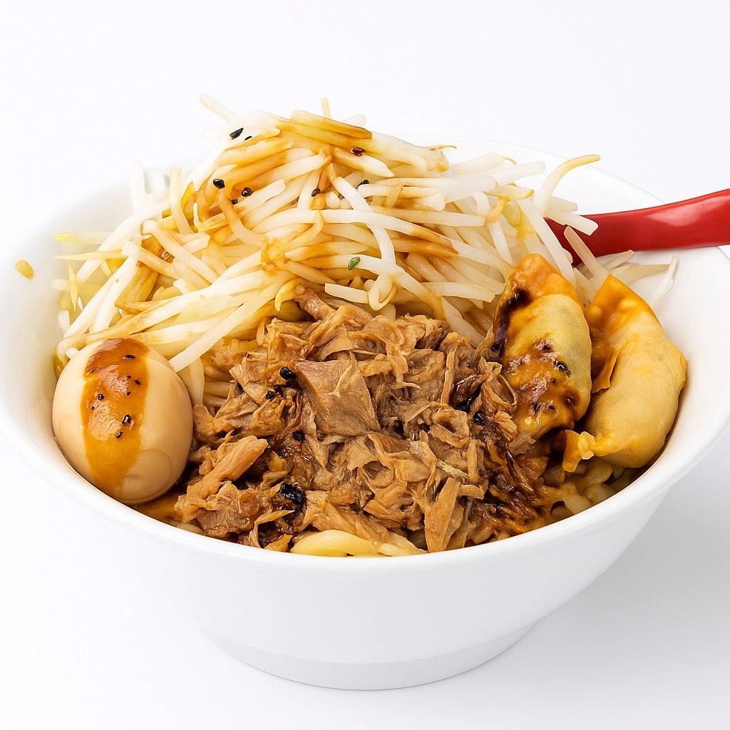 ボリューム満点汁無しそば。